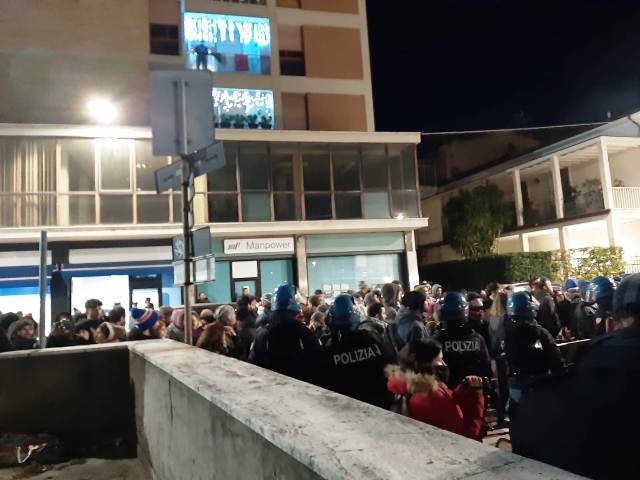 Dentro la sede dell'estrema destra una cinquantina tra militanti puri, simpatizzanti e curiosi hanno presenziato al taglio del nastro. 'Circondate' per cause di ordine pubblico le altre attività commerciali presenti in zona. I cori da dentro non arrivano per la musica mandata dall'amplificaore verso uno dei due 'fronti'. Per ora la convivenza sembra possibile ma bisognerà aspettare i giorni successivi per testare la tenuta della presenza di CasaPound. Senza cordone di sicurezza.