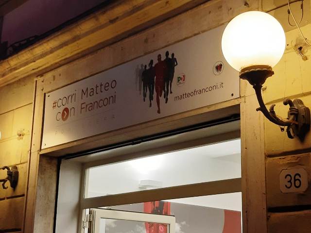Poco meno di un centinaio di persone ha presenziato all'inaugurazione del comitato elettorale per Matteo Franconi in via Roma a Pontedera ha qualche parallela di distanza dal comitato di CasaPound si sono riuniti i rappresentanti politici della Valdera di schienamento fidi corri con Matteo franconi è lo slogan di lancio della corsa per le primarie.