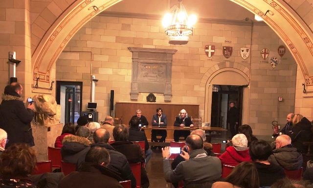 Il vicesindaco Andrea Corsi e l’assessore al Commercio e Turismo Alberto Tirelli insieme al Maestro Lippi hanno presentato alla cittadinanza, nella Sala delle Lupe di Palazzo Pubblico, l’iniziativa che prevede l’installazione di opere d’arte dedicate alle festività del Natale in varie zone della città.