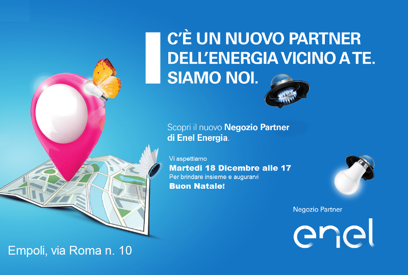 Il taglio del nastro si svolgerà domani, martedì 18 dicembre, alle ore 17:00, alla presenza del Sindaco di Empoli Brenda Barnini, del responsabile Punti Enel Partner Toscana Carlo Pastorelli, del channel manager Enel Energia del territorio Laura Faberi e dell’imprenditore Giacomo Grassini di GES START, partner specializzato nel settore della consulenza energetica che gestirà l’attività di Empoli e che conta già Punti Enel a Fucecchio e Figline Valdarno.