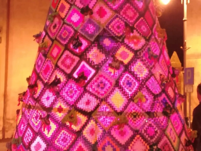 Un albero di Natale dell’altezza di tre metri e due di diametro interamente realizzato con la tecnica del ‘grenny square’ ovvero mattonelle di lana realizzate all’uncinetto. E’ quanto realizzato dal comitato ‘Bettolle in rosa’ e posizionato in piazza Garibaldi. L’albero, è stato realizzato da un gruppo di sette donne ed ha preso vita nel mese di novembre. Pe portarlo a termine, con la tecnica della maglia alta e della catenella, sono serviti duecento gomitoli di lana e almeno 5 chilometri di filo. A comporre l’albero trecento riquadri interamente realizzati a mano. I gomitoli sono stati donati dalle maglierie della zona mentre l’illuminazione, interamente in rosa, è andata a completare l’opera. Il Comitato ‘Bettolle in rosa’ nasce nel 2015 per iniziativa di donne mastectomizzate e come luogo di sensibilizzazione sul tema del tumore al seno, oggi è formato da 30 persone. Ogni anno ad ottobre il comitato addobba il centro di Bettolle con la tecnica dell’urban knitting con lo scopo di sensibilizzare sul tema della prevenzione al tumore al seno.