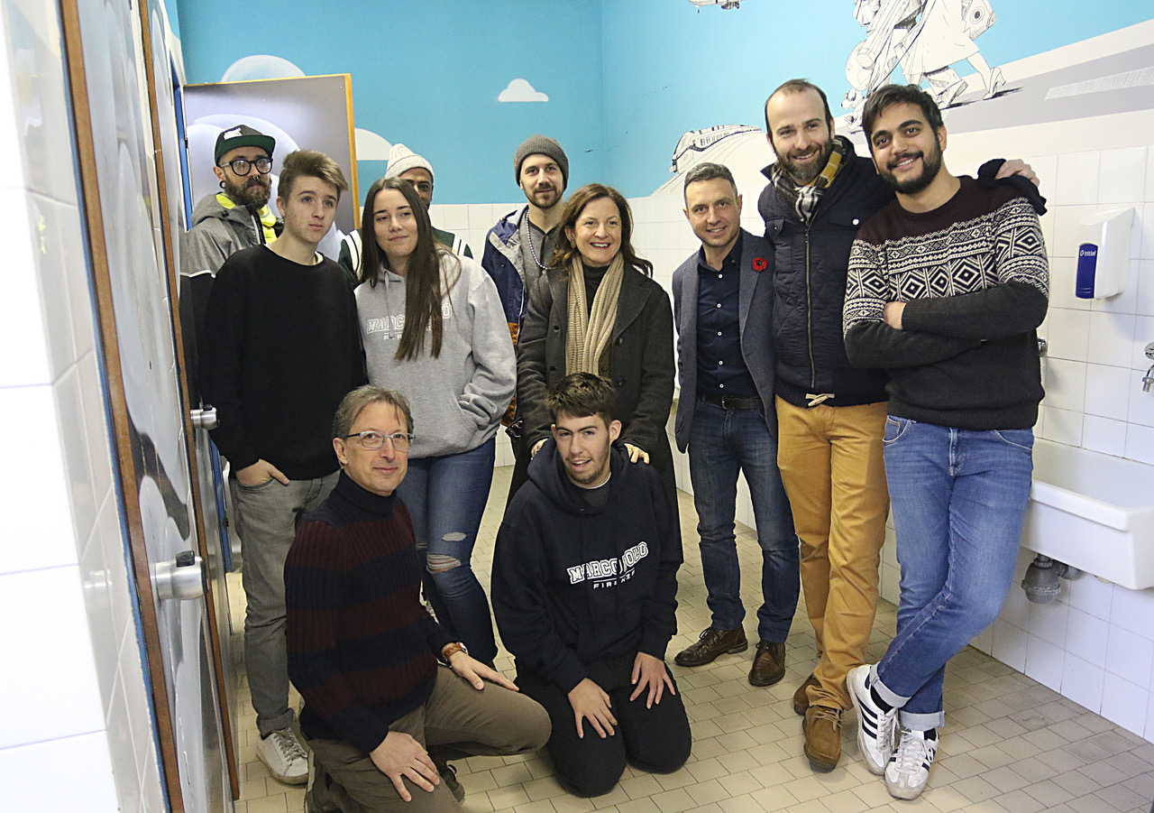Un'aula all'aperto e tanti nuovi murales. Duplice inaugurazione stamani all’Istituto tecnico per il turismo 'Marco Polo' di Firenze dopo gli interventi di questi ultimi mesi. Anzitutto per i nuovi murales, che, proseguendo il percorso avviato lo scorso anno sulla facciata, si sono sviluppati sui 12 bagni della sede di via San Bartolo a Cintoia e sul corridoio principale. A realizzarli sono stati realizzati Nico Lopez e Umberto Staila della EDF Crew, che hanno declinato in vari modi il tema della migrazione.
