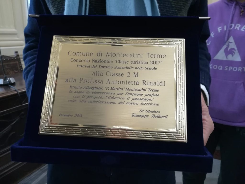 "All'istituto Martini e alla classe 2M, in segno di riconoscenza per l'impegno profuso con il progetto "Educare il paesaggio", volto ala valorizzazione del nostro territorio", è la scritta che celebra il successo del video degli studenti.