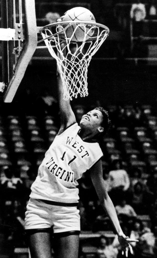 Per quanto ci sia chi giura che la prima donna a schiacciare sia stata Nera White negli anni '50 del secolo scorso, in un periodo nel quale la pallacanestro femminile non era neanche inserita nel programma sportivo della NCAA, di tali presunte gesta non vi è traccia o testimonianza inoppugnabile. Si deve quindi assegnare la palma di pioniera a Georgeann Wells dell'Università della West Virginia, che compì l'impresa nel 1984 in occasione della vittoriosa trasferta contro Charleston. Tuttavia, quelli non erano ancora i tempi dell'ubiqua presenza degli attuali mezzi di ripresa cine-fotografica, né tantomeno dell'ossessiva diffusione delle immagini sugli inesistenti social network, e la prodezza di Wells passò virtualmente inosservata. Circa un centinaio di persone sugli spalti assistettero alla partita e l'evento fu abbondantemente commentato dalla stampa americana, incluso il New York Times, ma a lungo fu creduto che non esistesse una registrazione filmata dell'avvenimento. Solo 25 anni dopo, intenzionato a celebrare degnamente l'anniversario, un ostinato reporter del Wall Street Journal fu capace di reperire le preziose immagini e di consegnare ai posteri la certezza incontestabile di quella prima volta.