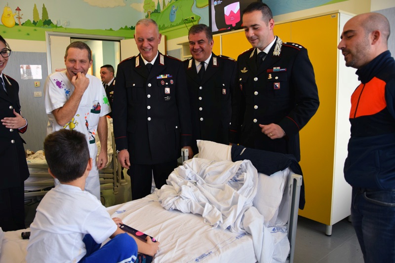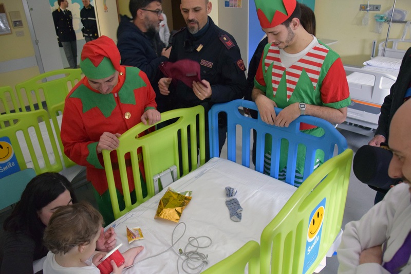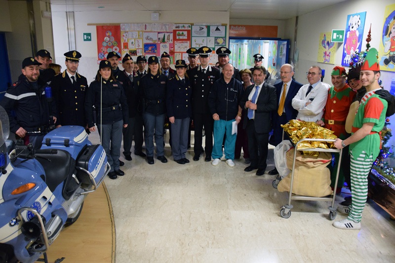 Polizia e carabinieri portano un sorriso ai piccoli ricoverati alle Scotte