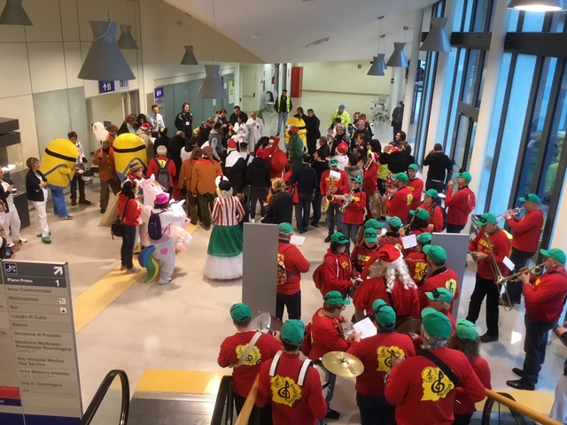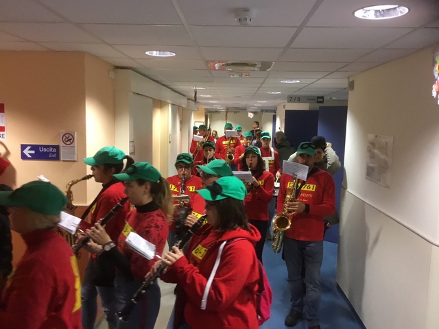 Nella loro tappa all'ospedale lucchese i clown-dottori ed i musicisti sono stati accolti dalla direttrice dell'ospedale di Lucca Michela Maielli e dalla responsabile del reparto di Pediatria Angelina Vaccaro, insieme anche all'assessore alle politiche sociali del Comune di Lucca Lucia Del Chiaro.