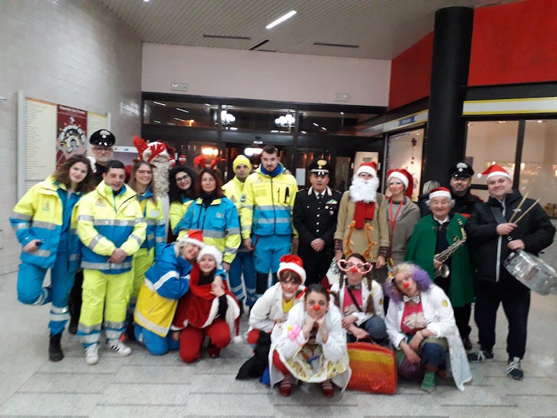 I Carabinieri guidati dal Luogotenente Gabriele Urso, insieme ai Volontari della Misericordia, ai “Clown dottori” della “Valigia dei Sorrisi” e ad alcuni membri della “Filarmonica di Arezzo”, si sono recati presso le corsie del reparto di pediatria dell’Ospedale San Donato, dove hanno donato pacchi dono, forniti dalla “Kinder Ferrero”, ai piccoli ammalati che pur non potendo trascorrere un felice Natale presso le loro famiglie, hanno così potuto vivere alcuni momenti di felicità’ .
