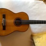 Gtr classica artigianale argentina della bottega Antigua Casa Nunez, firmata a mano dal costruttore. Quella rubata si distingue dagli intarsi (identici nei due modelli) inconfondibili sulla paletta, dalle decorazioni, dal fatto che ha (cosa molto particolare) un doppio fondo ben visibile osservando il retro del corpo, che ha due feritoie a forma di f come quelle che si vedono sulle tavole armoniche dei violini. Purtroppo la chitarra che mi è rimasta non ha questa caratteristica e non avendo foto dell’originale non posso mostrarle. La chitarra rubata è comunque ben distinguibile dalle info date sopra e a parte questo dettaglio, è quasi identica a questa nell’aspetto. Anche l’etichetta all’interno del corpo è pressoché identica, cambia solo l’anno di costruzione (1962 se non ricordo male) e il nome del costruttore.