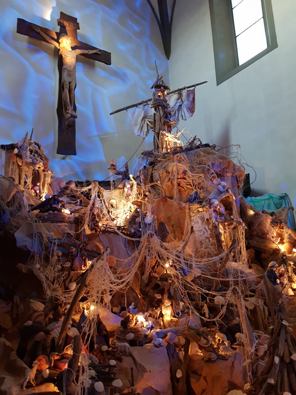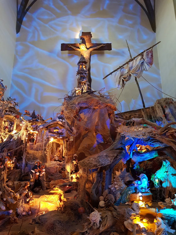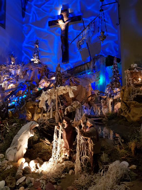 Il Presepe, riconosciuto fra i più belli della Toscana, unico come genere e come allestimento che si rinnova e cambia completamente ogni anno, presenta spunti meditativi che vanno oltre la natività ma riportano il visitatore a fermarsi per immedesimarsi nel protagonista, ques'anno San Pietro, che sul Lago di Tiberiade si fida del suo amico Gesù e lancia le reti per riceverne una pesca abbondante dopo una notte di pesca senza risultati.