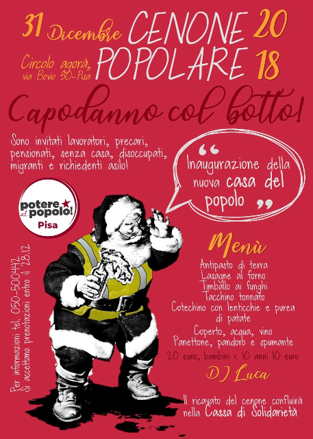 CENONE POPOLARE e CAPODANNO COL BOTTO al circolo agorà, in Via Bovio 50 a Pisa, organizzato da Potere al Popolo Pisa