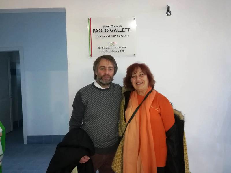 Le grandi arcate e le griglie in legno si armonizzano con le pareti parzialmente finestrate. I colori e le forme sono caldi e avvolgenti: un invito a far parte della cultura dello sport indoor. Da questa mattina la nuova palestra di via Fontazzi, presentata alle società sportive e ai cittadini con un open day promosso dalle amministrazioni comunali di Tavarnelle e Barberino, porta un nome illustre che ha brillato per molti anni nella storia del nuoto italiano. L’opera pubblica, che ha richiesto un investimento complessivo pari a circa 1 milione di euro, si lega allo ‘stile libero’ di Paolo Galletti, il campione olimpionico di adozione tavarnellina che ha collezionato undici titoli italiani nel decennio ’50-’60 e ha rappresentato l’Italia ai campionati di Melbourne nel 1956. La moglie Anna e i figli hanno scoperto insieme al sindaco David Baroncelli la targa che identifica il nuovo impianto in ricordo dell’impegno e dei prestigiosi risultati conseguiti nello scenario sportivo internazionale da Paolo Galletti.