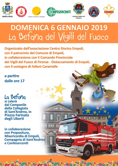 L’associazione Centro Storico Empoli, col patrocinio del Comune di Empoli, in stretta collaborazione col Comando Provinciale dei Vigili del Fuoco di Firenze e il Distaccamento di Empoli, presenta l’evento che si svolgerà nel pomeriggio di domenica 6 gennaio, a partire dalle 17, in Piazza Farinata degli Uberti.