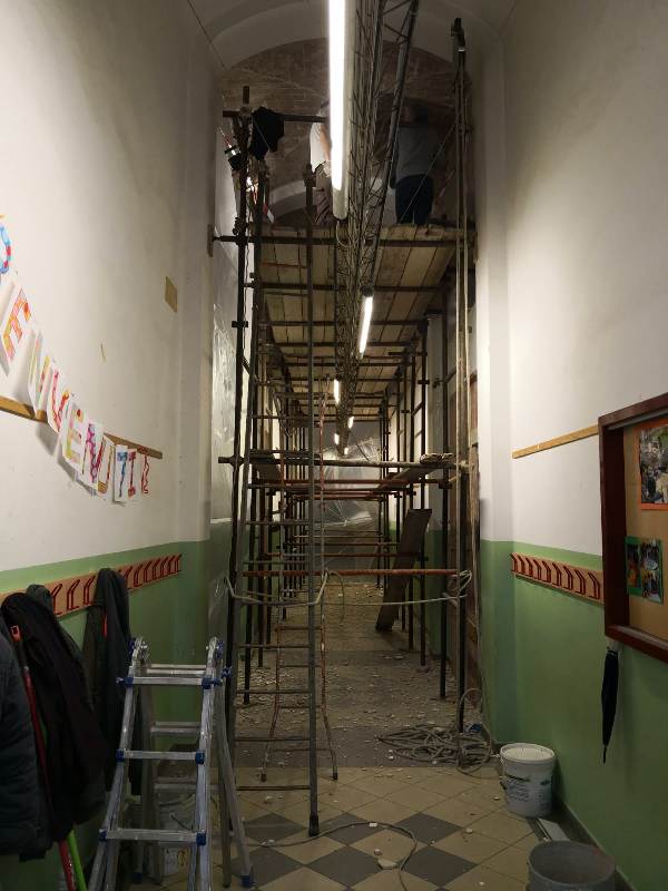I lavori sono stati decisi a seguito delle indagini che l’amministrazione comunale svolge continuativamente sugli edifici che ospitano le scuole. L’intervento riguarda nello specifico lavori di consolidamento dei soffitti. Nella maggior parte dei casi è stato necessario rimuovere l’intonaco presente, se ritenuto troppo “debole”, per sostituirlo con un nuovo intonaco fermato alla struttura con resine e reti apposite. In alcuni casi invece, per garantire maggiore sicurezza, è stato necessario realizzare delle controsoffittature.