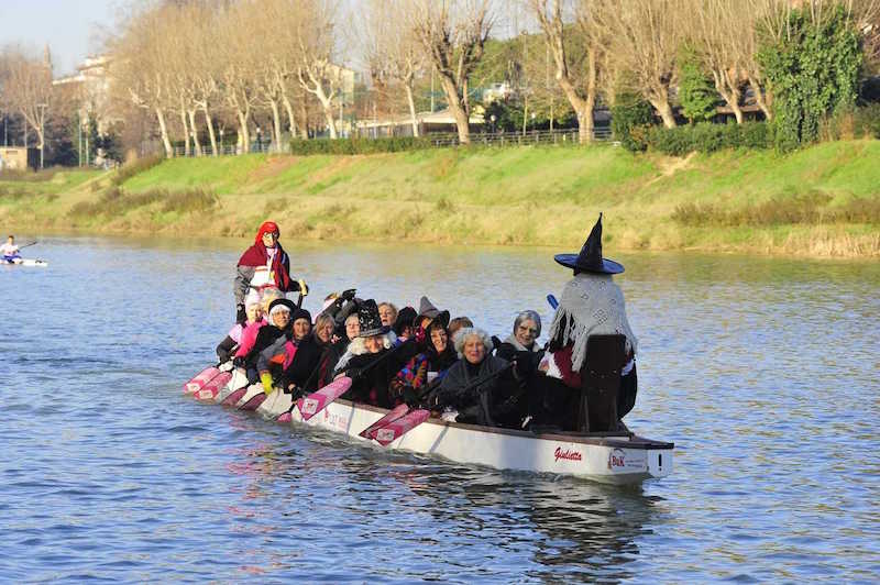 Tutti i fiorentini sanno che la Befana, oltre a volare con la sua inseparabile scopa, è bravissima anche con la pagaia. Per il decimo anno consecutivo lo dimostrerà arrivando alla Canottieri Comunali Firenze a bordo di un Dragon Boat carico di calze da donare ai bambini che parteciperanno alla festa.