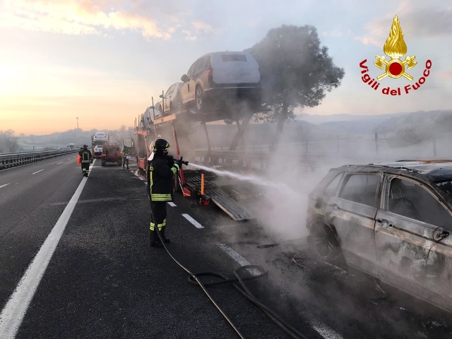 I vigili del fuoco di Siena sono intervenuti questa mattina per l'incendio di un autocarro adibito al trasporto di autovetture, sull'autostrada A1 al km 405+300, nel Comune di Chiusi. Non si segnalano persone coinvolte e per tutta la durata delle operazioni, il traffico ha subito solo rallentamenti. Sul posto Polizia Stradale di Arezzo e personale società Autostrade.
