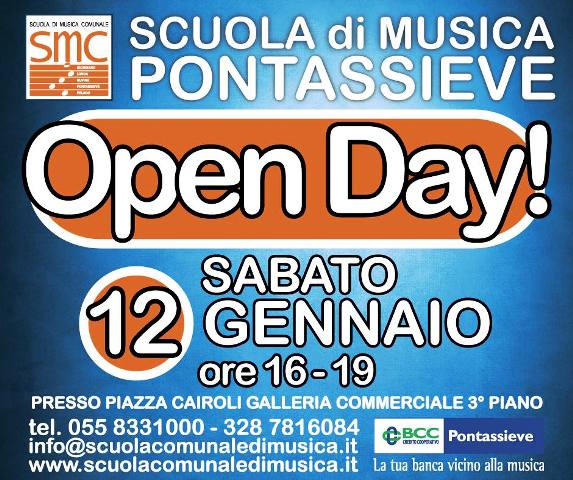 Sabato 12 gennaio dalle ore 16 alle ore 18.30, nuovo appuntamento con l’open Day della scuola di musica comunale presso la sede nella Galleria Cairoli, a Pontassieve. Un’altra occasione per visitare i locali con la possibilità di provare i vari strumenti e conoscere gli insegnanti.