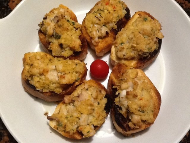 Crostini di calamari e gamberi