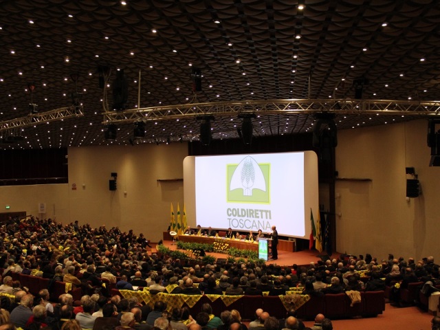 L’Assemblea degli Stati Generali di Coldiretti Toscana, con gli agricoltori provenienti da ogni angolo della regione, è stata l’occasione per incontrare oggi a Firenze il Ministro dell’Agricoltura On. Gian Marco Centinaio. Nella sala rossa del Palazzo dei Congressi, gremita in ogni ordine di posti, il faccia a faccia a mo’ di “question time” dell’agricoltura toscana con il più alto rappresentante di Governo del settore primario. In sala di regia Fabrizio Filippi e Antonio De Concilio, Presidente e Direttore di Coldiretti Toscana. Per l’occasione COLDIRETTI TOSCANA ha sottoposto all’attenzione del Ministro un documento con alcuni temi di particolare interesse per il territorio regionale, evidenziando le criticità ed esponendo ipotesi di superamento delle stesse. Tra gli argomenti del documento l’emergenza causata dall’invasione della fauna selvatica ormai fuori controllo; le difficoltà che affliggono le imprese per la mancata semplificazione burocratica che ne sacrifica risorse economiche e scelte imprenditoriali come il ricorso all’assicurazione agevolata per le calamità naturali; la concorrenza sleale del falso “made in Tuscany” che mina la forte propensione all’export dell’agricoltura regionale; le aree marginali con fenomeni di abbandono e degrado idrogeologico ed il ruolo del vivaismo; l’andamento stagionale sempre più pazzo con fenomeni estremi che vanno dalla perdurante siccità alle “bombe d’acqua” con i problemi connessi ad irrigazione e regimazione delle acque; le difficoltà del settore olivicolo che, unitamente ad altre produzioni come quella vinicola, rappresenta da sempre un biglietto da visita per il “made in Tuscany” nel mondo.