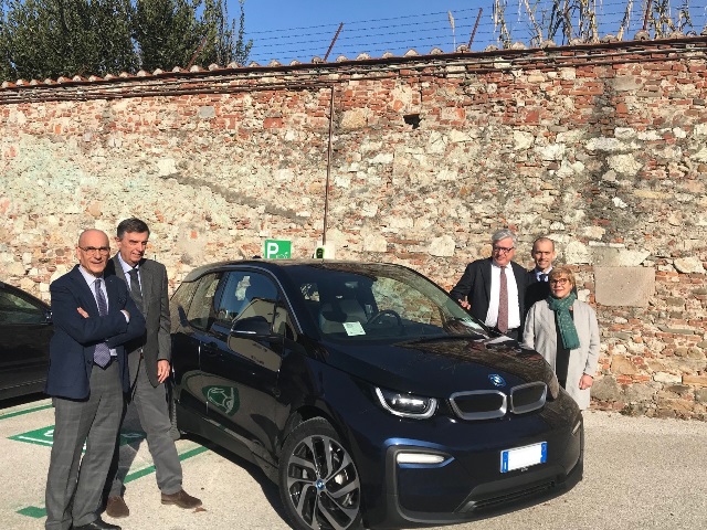 Una scelta “green”. È a propulsione interamente elettrica la nuova auto aziendale della Fondazione Cassa di Risparmio di Lucca che questa mattina è stata consegnata in San Micheletto al Presidente Marcello Bertocchini da Giorgio Serafini, storico fondatore della concessionaria Lucar, e dal figlio Michele.