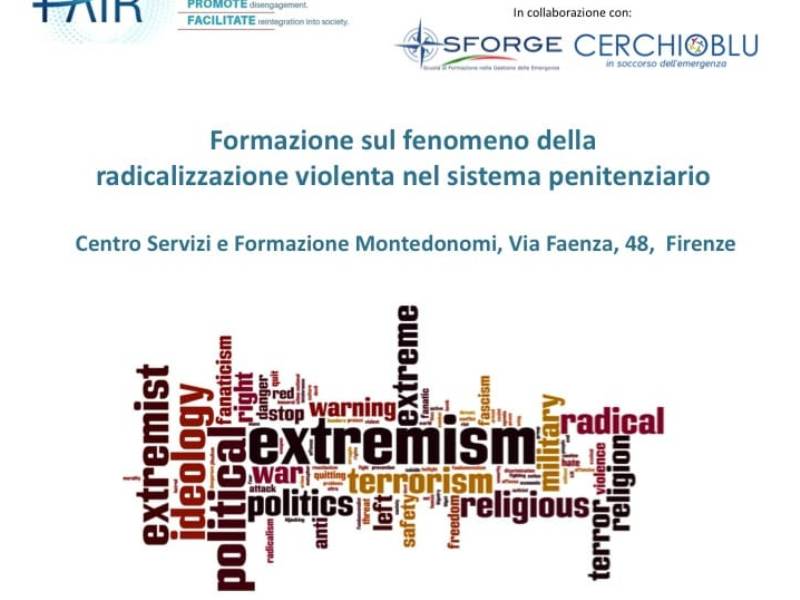 Domani, mercoledì 16 gennaio, il Centro Servizi e Formazione Montedomini (Via Faenza, 48 – Firenze) ospiterà il primo dei tre incontri formativi sul fenomeno della radicalizzazione violenta nel sistema penitenziario che fanno parte del progetto europeo FAIR (Fighting Against Intimates’ Radicalisation). Questi tre appuntamenti sono organizzati da Nuovo Villaggio del Fanciullo di Ravenna in collaborazione con CerchioBlu e SFORGE (Scuola di Formazione nella Gestione delle Emergenze).