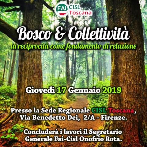 Una tendenza da invertire, secondo la Fai-Cisl Toscana, che al bosco dedica un convegno a cui parteciperanno esperti e addetti ai lavori, insieme all’assessore regionale Marco Remaschi e al segretario generale nazionale della Fai-Cisl Onofrio Rota.