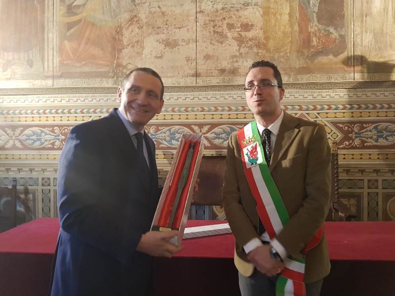 Stamani il Prefetto di Pisa Giuseppe Castaldo è stato ricevuto nella Sala del Maggior Consiglio di Palazzo dei Priori dal sindaco Marco Buselli. Presenti le autorità civili e militari, oltre a rappresentanti di enti e istituzioni, mentre in precedenza il Prefetto ha incontrato in separata sede anche il Vescovo della Diocesi di Volterra. Il Prefetto ha potuto ammirare la Deposizione del Rosso Fiorentino, un laboratorio di alabastro e la Sala del Maggior Consiglio di Palazzo dei Priori. «Si è trattato di un incontro cordiale e molto positivo – dichiara il sindaco Buselli - , in cui il Prefetto, che è stato anche Commissario in alcune Amministrazioni Comunali, ha dato piena disponibilità per una leale e concreta collaborazione fra Istituzioni. Durante l'incontro ho potuto illustrare a grandi linee le caratteristiche della nostra città e del territorio, chiedendo sostegno per la necessità di rafforzare i collegamenti, mantenere i servizi e creare opportunità affinchè i giovani restino e ci sia lavoro e sviluppo. Ho avanzato al Prefetto anche la richiesta che alla città di Volterra venga conferita la Medaglia d'Oro al Valor Civile, per l'episodio del salvataggio della Porta all'Arco, che lo stesso Prefetto ha considerato un esempio civico di alto valore morale». Al termine dell'incontro con le autorità, il sindaco ha consegnato al nuovo Prefetto una riproduzione fedele dell'Ombra della Sera, vera e propria icona della città etrusca.