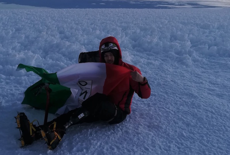 Sul portale Ogni Sport Oltre l’obiettivo minimo era fissato molto più in basso, a “quota” 6500 euro, cifra che la Fondazione Vodafone raddoppierà. Ma Andrea, uomo d’acciaio che neppure una meningite quattro anni fa ha saputo frenare, punta sempre più in alto. E nei primi giorni di gennaio, per convincere tutti che stava davvero facendo sul serio, progettando di essere il primo uomo amputato a gambe e mani a salire sugli oltre 8.000 metri del Tetto del Mondo, ha scalato i 6268 metri del vulcano Chimborazo, in Ecuador.