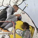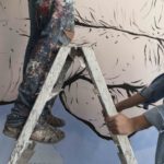 La struttura di Sollicciano è stata progettata seguendo lo schema di un giglio, simbolo di Firenze, il che la rende una struttura poco sicura, dove spostamenti e questioni amministrative diventano ancor più complicate. In questa bolgia di burocrazia, abbiamo lavorato con 12 detenuti della Sezione 13 – Emanuele, Gianluca, Franco, Bala, Luis, Kledian, Christian, Stefano, Renzo, Azfal, Issam – dipingendo all’interno dell’area comune.