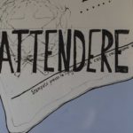 Sull’altra parete, un’imponente mano/timbro indica/giudica un uomo bloccato su un’altissima pila di documenti, pronta a marchiare una “domandina” (i moduli che i detenuti utilizzano per qualsiasi tipo di richiesta all’amministrazione) con un solenne “attendere”, a testimonianza della lentezza della burocrazia che opprime pesantemente il sistema carcerario.