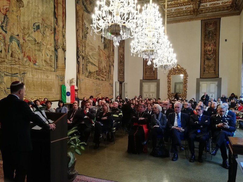 Gli studenti di alcune scuole dell’area metropolitana fiorentina sono stati i protagonisti della cerimonia, che si è svolta oggi a Palazzo Medici Riccardi, per celebrare il “Giorno della memoria 2019”. Una ottantina di ragazze e ragazzi della scuola media “Dino Compagni” di Bagno a Ripoli, della scuola media “Altero Spinelli” di Scandicci e dell’istituto alberghiero “Aurelio Saffi” di Firenze hanno partecipato alla manifestazione portando i loro contributi. Alcuni hanno letto brani, altri hanno esposto i risultati di una ricerca, altri ancora hanno suonato pezzi musicali. Testimonianze molto sentite che hanno aggiunto un particolare significato ad un evento molto partecipato. Dopo i saluti del prefetto Laura Lega, hanno parlato il rabbino capo della comunità ebraica fiorentina, Amedeo Spagnoletto, e il rettore dell’Università di Firenze, Luigi Dei, che è intervenuto con la Lectio “Primo Levi fra chimica, letteratura e memoria”. “La democrazia ha bisogno di memoria, ha detto il prefetto Laura Lega. Oggi si incrocia la memoria privata delle famiglie, i cui congiunti hanno vissuto la terribile esperienza dei campi di sterminio, con la memoria collettiva della nostra comunità nazionale, che deve rimanere viva e che ha bisogno di essere costantemente alimentata, soprattutto nei più giovani”.