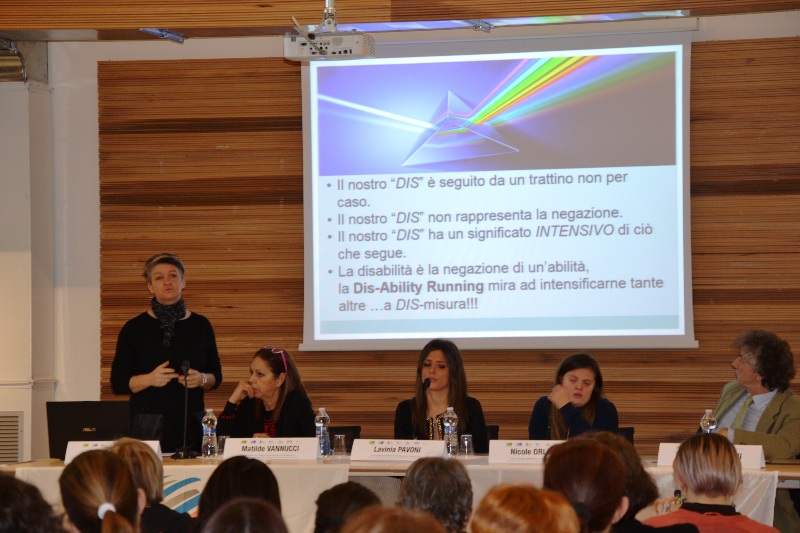 Si è parlato poi di un’esperienza locale, quella della Dis-Ability Running, un progetto di ACSI Atletica Sport Toscana e Azienda Usl Toscana Centro nato nel 2015 come iniziativa promozionale, evolutosi fino all’organizzazione della prima edizione dei campionati regionali Fisdir di atletica leggera proprio a Montelupo: ne hanno parlato la Dott.ssa Ignazia Scibetta della USL Toscana Centro, Ilaria Marras, tecnico Fisdir dell’ACSI Atletica, le educatrici Matilde Vannucci e Lavinia Pavoni.