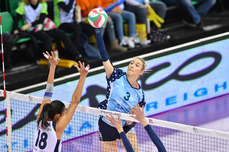 Nel tie break c’è Lippman di nuovo in 2 (con Sorokaite in 4 per degradi), mentre rimane in campo Candi (entrata nel finale del quarto per Popovic), e proprio lei con primo tempo ed ace firma l’iniziale 3-1: Courtney impatta subito (5-5) e poi trova il primo vantaggio (6-7), anche se poi due errori permettono a Il Bisonte di cambiare campo avanti nel punteggio (8-7). Un altro errore e un muro di Candi (terzo punto nel tie break) significano il 10-7 e il conseguente time out di Bertini, poi sul 10-9 è Caprara a fermare il gioco: Daalderop continua a picchiare (12-10), la stessa olandese trova il 14-11, e poi al secondo match point è ancora lei, meritatamente MVP del match, a firmare il 15-12 della vittoria.
