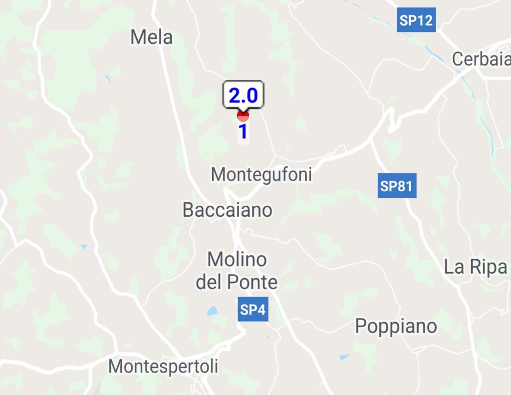 A quattro chilometri a nord di Montespertoli in zona Montegufoni alle 9.24 si è registrata una scossa di terremoto di 2.0 di magnitudo a una profondità di 7.4 km.