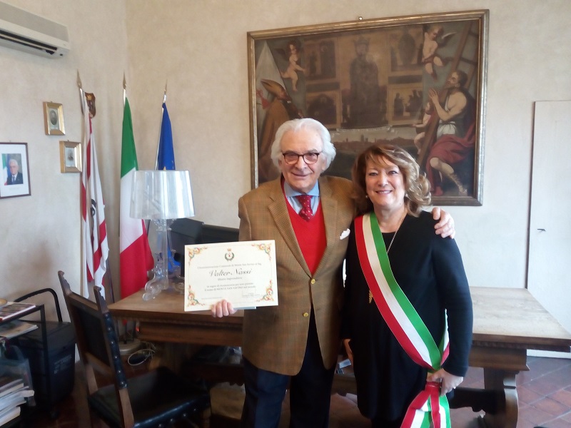 “Ho voluto approfittare della presenza per qualche giorno a Monte San Savino di Valter per tributargli l’onore che merita, come imprenditore di successo e soprattutto per come, con grande passione e attaccamento, ha saputo portare il nome di Monte San Savino nel mondo” ha dichiarato il Sindaco. “Valter non solo non ha mai dimenticato le sue origini, ma ne ha fatto un tesoro in più da mostrare al popolo statunitense. A nome di tutta la comunità savinese gli sono quindi riconoscente per come, oltre alla nostra cucina, ha saputo far conoscere il patrimonio storico, artistico e architettonico della nostra terra”.
