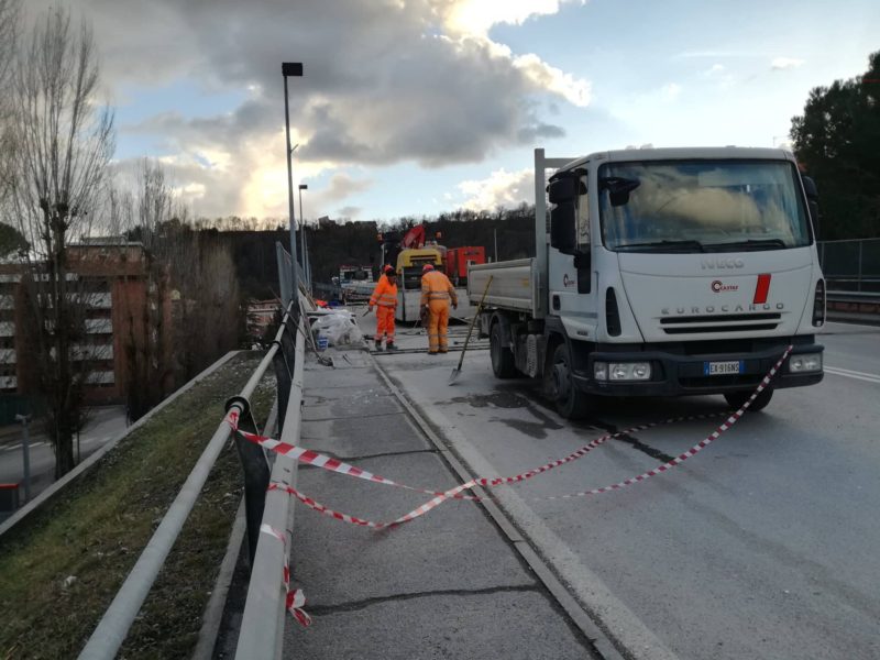 E’ in corso l’intervento sul ponte Nenni per sostituire un giunto di collegamento. Si tratta di un intervento specialistico per il quale l’Amministrazione aveva effettuato nei mesi scorsi una serie di sopralluoghi per individuare l’origine di alcuni rumori segnalati. Dalle verifiche era emerso che la struttura, in piena sicurezza, aveva necessità di un intervento sui giunti, che fanno da collettori fra i solai ed i terrapieni laterali e che si sono usurati. I giunti infatti danno elasticità alla struttura e continuità all’impalcato e la loro non piena funzionalità faceva si che il passaggio dei mezzi generi rumore. Dopo aver provveduto ad alcune operazioni provvisorie per mitigare il rumore, è iniziato l’intervento specialistico che prevede la sostituzione di 12 metri di giunto. L’intervento sarà realizzato con modifiche temporanee alla viabilità che riguarderanno il ponte metà carreggiata per volta. In questo momento sono in corso le operazioni per togliere il vecchio giunto. Cond