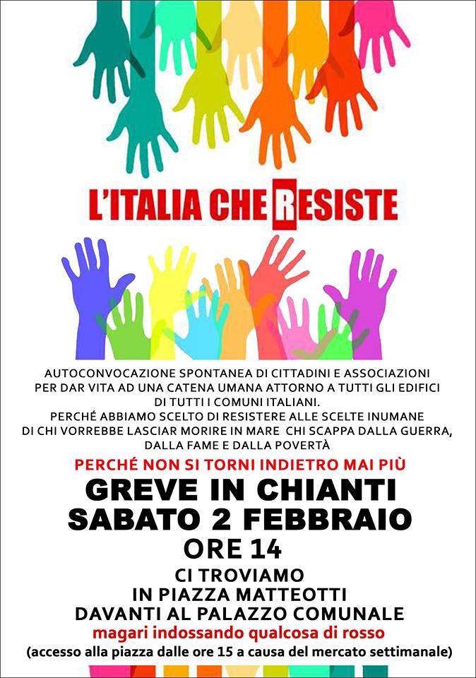 Anche Greve in Chianti risponderà all'appello de "L'Italia che resiste" lanciato a livello nazionale per Sabato 2 febbraio alle ore 14 davanti a tutti i comuni d'Italia.