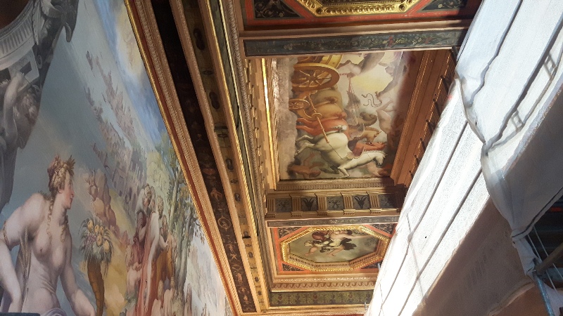 Dopo mesi di ponteggi, a poco a poco si svela il soffitto della Sala degli Elementi di Palazzo Vecchio: il restauro è iniziato nel 2017 e terminerà a primavera prossima. I lavori, che hanno lasciato fruibile la Sala pur con un percorso parziale, hanno già svelato colori e particolari originali delle pareti e a breve sarà completamente rimesso a nuovo anche il soffitto. Il restauro ha ricevuto il finanziamento dalla Fondazione Giulio e Giovanna Sacchetti Onlus per oltre 800 mila euro ed è inserito nel progetto Flic (Florence I care) che coinvolge i privati nel restauro dei beni culturali cittadini.