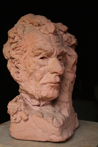 Ricordo quando in una mattina a casa sua, allorché era già provato dalla malattia che lo porterà alla morte nel1969, gli abbozzai con la creta questo ritratto, fiero come sempre.