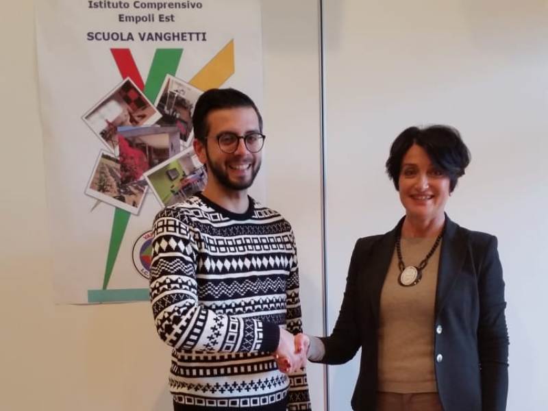 - Il direttore di gonews.it Elia Billero e la dirigente scolastica Grazia Mazzoni