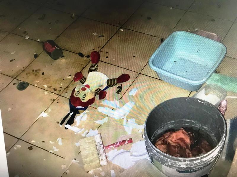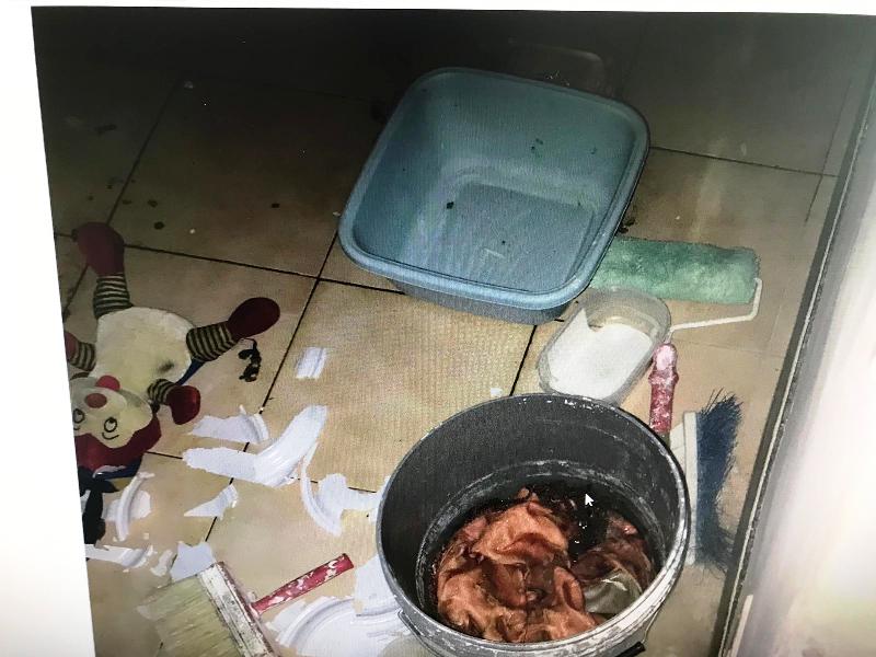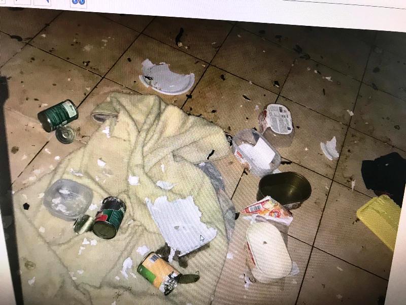 All'interno della stanza c'era un barboncino dal pelo bianco tremante, smunto e maleodorante. La stanza invece al suo interno era piena di escrementi, con finestra e persiane chiuse e senza ciotole o giacigli per l’animale.