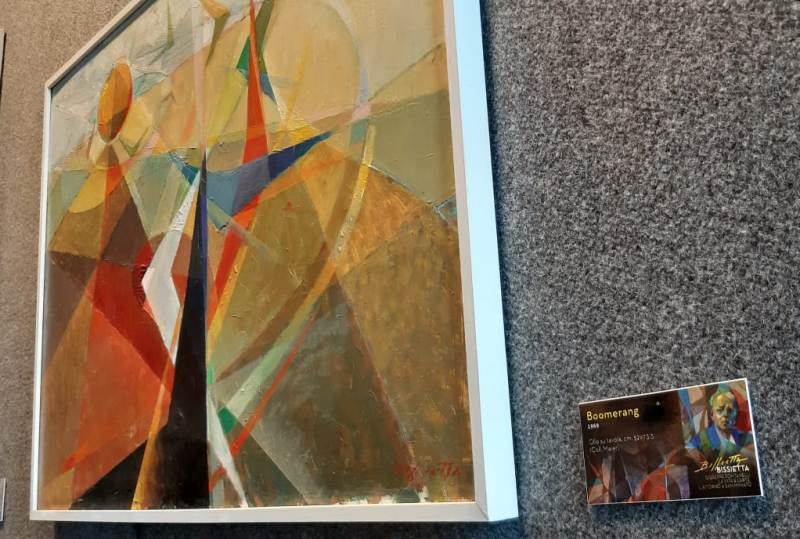 “La mostra inizia con opere degli anni Trenta, gli inizi dell’attività pittorica di Bissietta, eseguiti a San Miniato, Reggio Emilia e Milano per proseguire con alcuni acquarelli dai vari fronti come inviato di guerra in Africa, in Egitto e Libia dove fu ferito – spiega Macchi -. Prosegue poi con i lavori dell’immediato dopoguerra e i bozzetti dei costumi per Assassinio nella cattedrale di Eliot per la regia di Strehler (1948). Dal 1949 inizia invece il periodo australiano che, attraverso varie opere da lui stesso chiamate aborigeno-surreali, ci porta fino al 1970 anno del suo rientro in Italia. Dal 1970 al 1977 si svolge l’ultimo periodo della creatività di Bissietta con il ritorno a San Miniato e l'ispirazione di una pittura dedicata alla 'scomposizione luminosa'”.