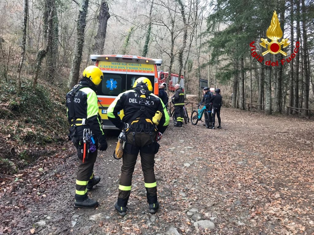 Ciclista cade in zona impervia, recuperato dai vigili del fuoco