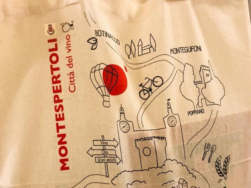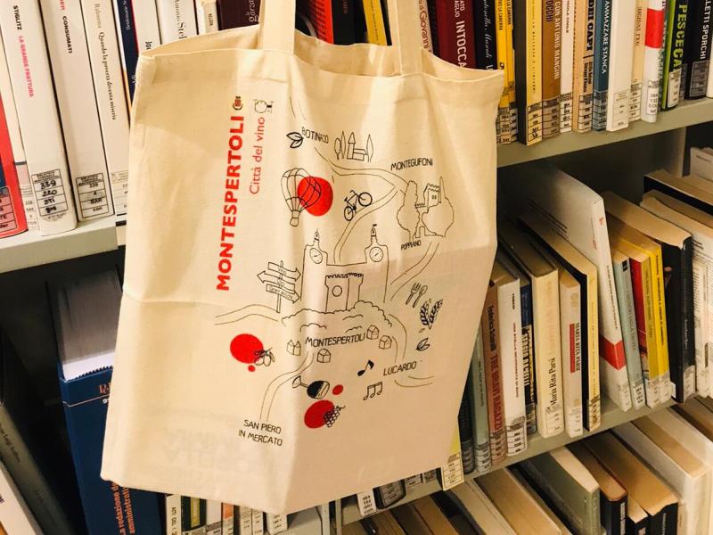 La borsa richiama l’idea di un percorso alla scoperta del territorio e delle attività che può offrire, i beni artistici e culturali sparsi nelle varie frazioni, con le cantine dove si producono eccellenti vini Chianti, le fattorie e i frantoi, il pane di grani antichi di Montespertoli, i percorsi di trekking e di bike-tourism sulle splendide colline della campagna toscana.