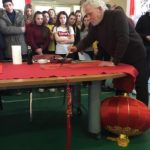 Nella prima parte dell’incontro, gli studenti hanno potuto apprezzare un’interessantissima lezione ed esibizione di calligrafia dal titolo “Bacchette e pennello: etimologia del lessico del cibo cinese”.