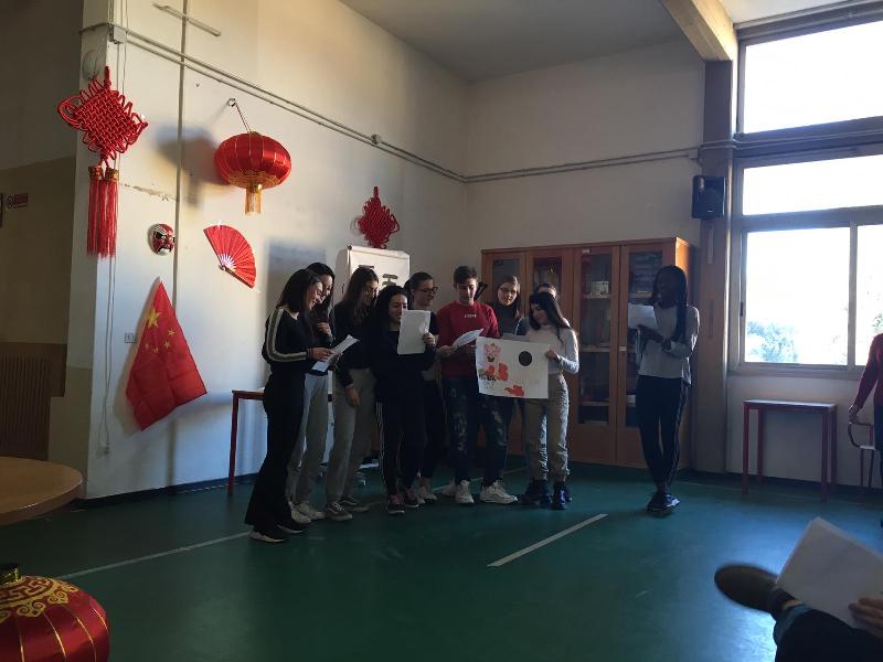 A seguire, gli stessi studenti, un po’ emozionati ma con grande entusiasmo, si sono esibiti cantando canzoni, recitando filastrocche e frasi di auguri, in cinese, per festeggiare il nuovo anno.