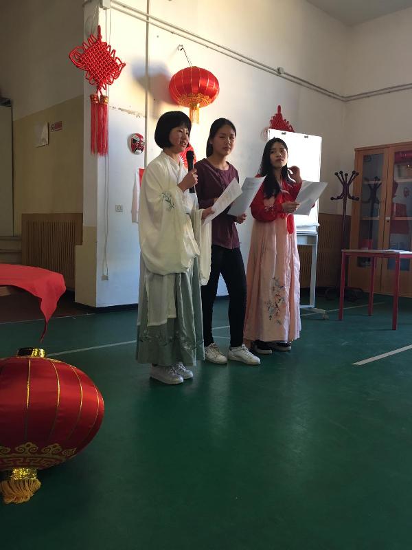 La manifestazione è stata presentata da tre giovanissime studentesse di nazionalità cinese che, indossando vestiti tradizionali del loro paese di origine, hanno richiamato l’attenzione del numeroso pubblico presente sulle attività culturali in programma, esprimendosi in lingua italiana e in cinese.