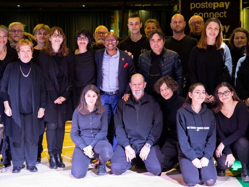 - Firenze, presentazione della mostra permanente Mediterraneum del fotografo Massimo Sestini al Mandela Forum, nella foto il Presidente del Nelson Mandela Foundation Sello Hatang con il coro 2019 02 12 © Niccolò Cambi/Massimo Sestini