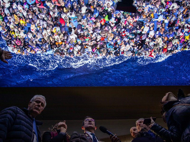 “Mediterraneum - il diritto alla speranza, scatti dal mare” presenta 14 grandi fotografie retro-illuminate, realizzate nel 2014 da Massimo Sestini durante le operazioni di soccorso ai migranti della Marina Militare Italiana.