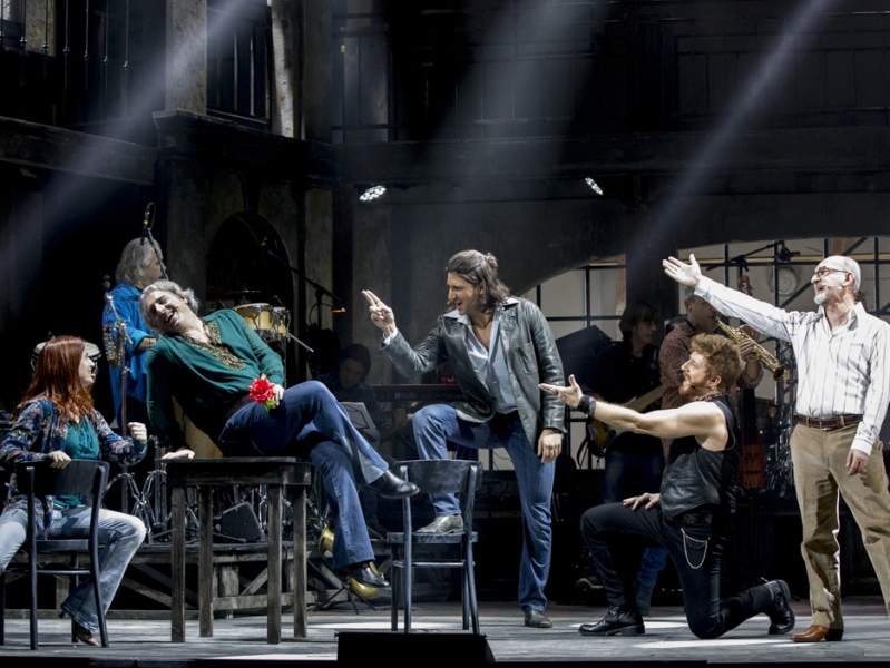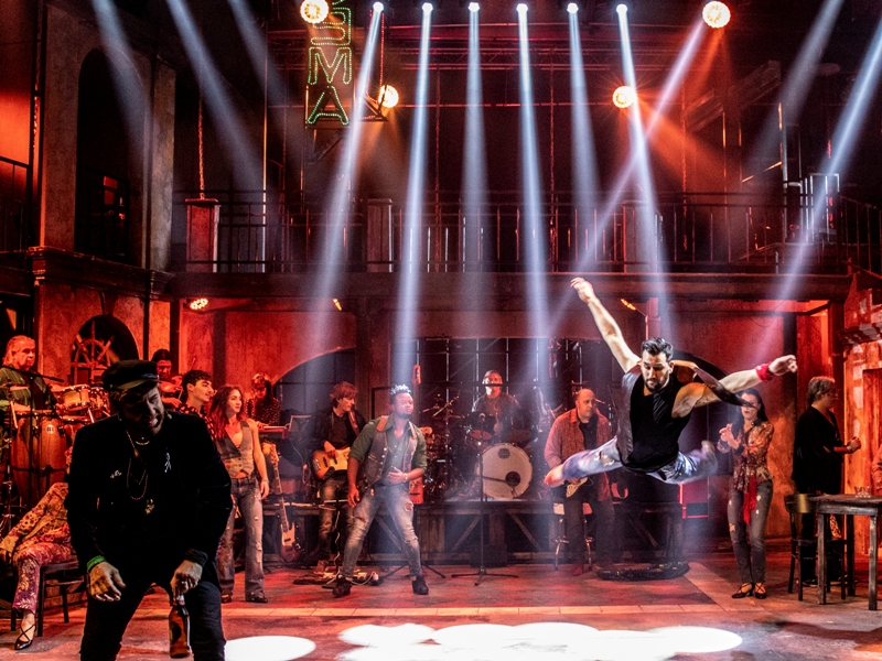 Le canzoni si mescolano con la drammaturgia e la tradizione partenopea: all’interno di una scenografia imponente sviluppata su più piani da Carlo De Marino, e animata dal disegno di luci del lights engineer Marco Palmieri, gli attori e i danzatori si muovono sulle coreografie di Cristina Menconi, appositamente studiate per accompagnare il racconto e la musica.
