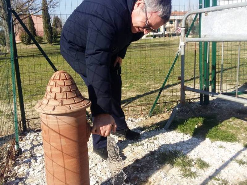 Dopo l’intervento di predisposizione, con il montaggio del rubinetto e le opere in muratura necessarie svolte dagli operai comunali, Acque Spa ha concluso l’allacciamento all’acquedotto.